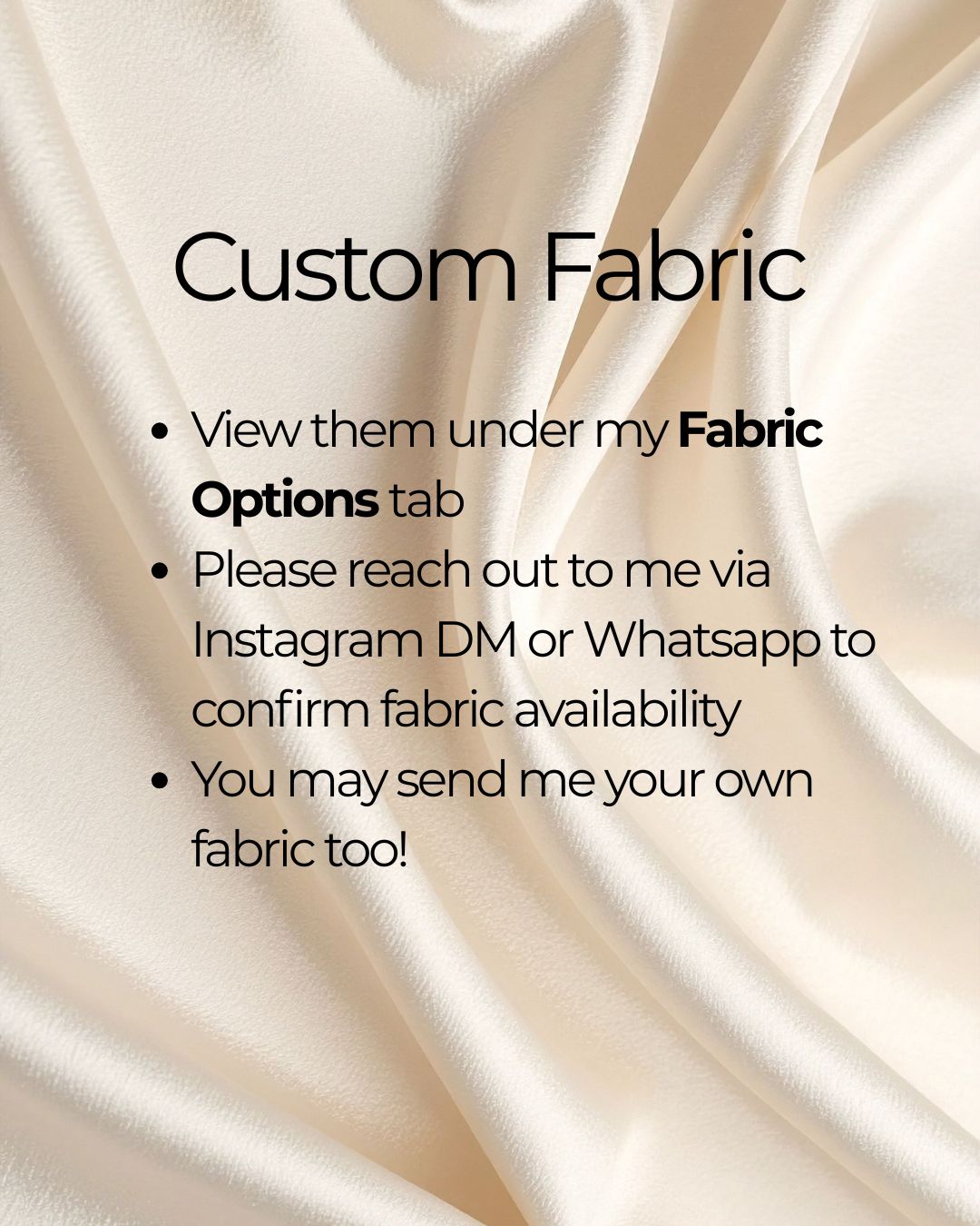 3) You may also pick fabrics from the Fabric Options tab, kindly reach out to me to confirm fabric availability!