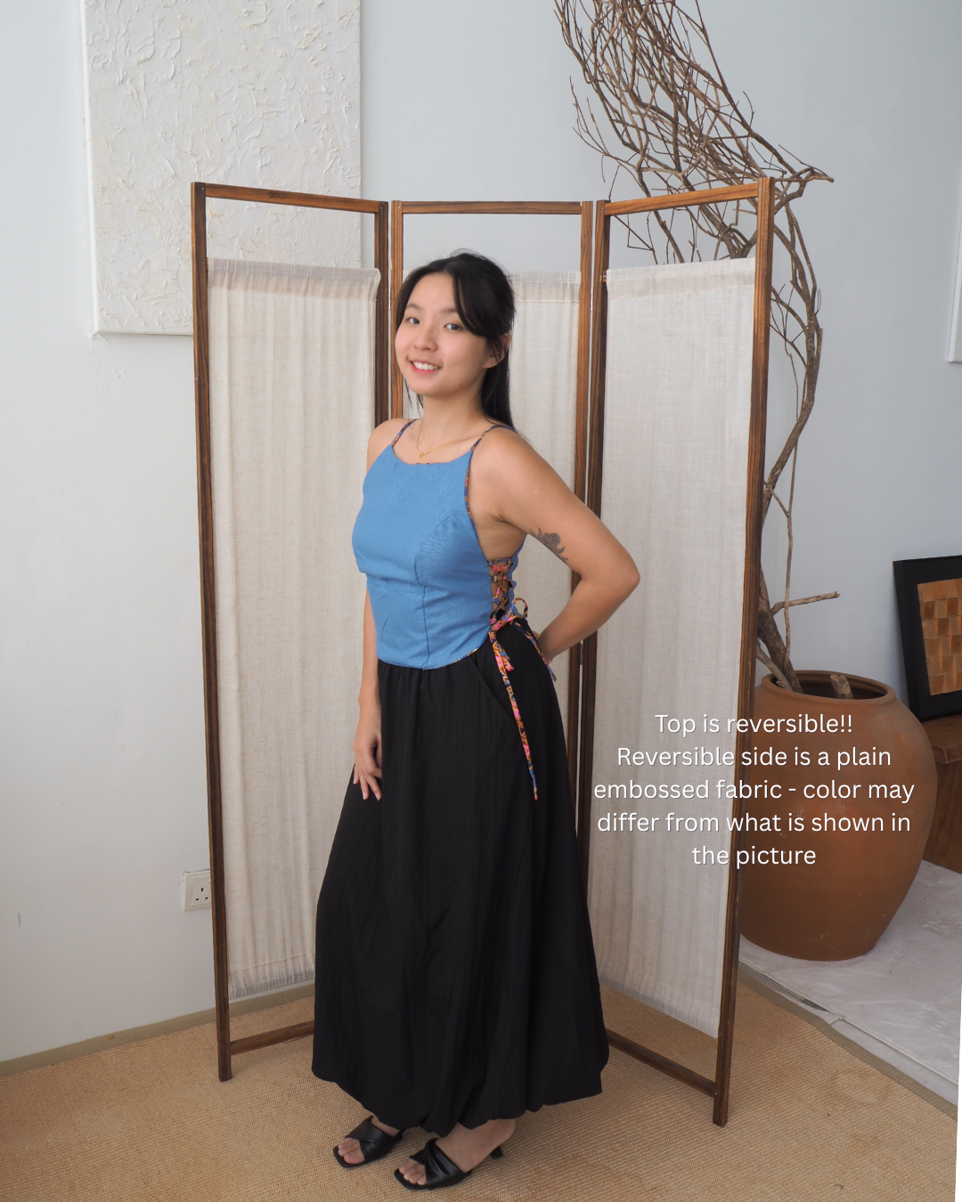 Reversible side is a plain embossed fabric - color may differ from what is shown in the picture